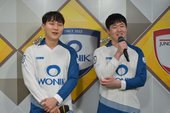 ▲국후 승자 인터뷰 중 환하게 웃고 있는 이원영 9단과 박정환 9단