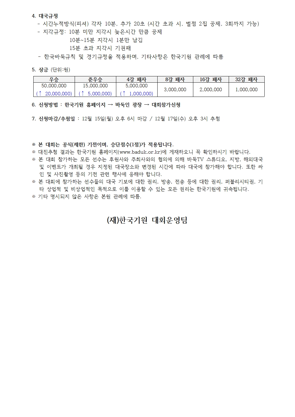 ※ 우승 상금이 5000만원으로 1000만원 상향 되었습니다. ※