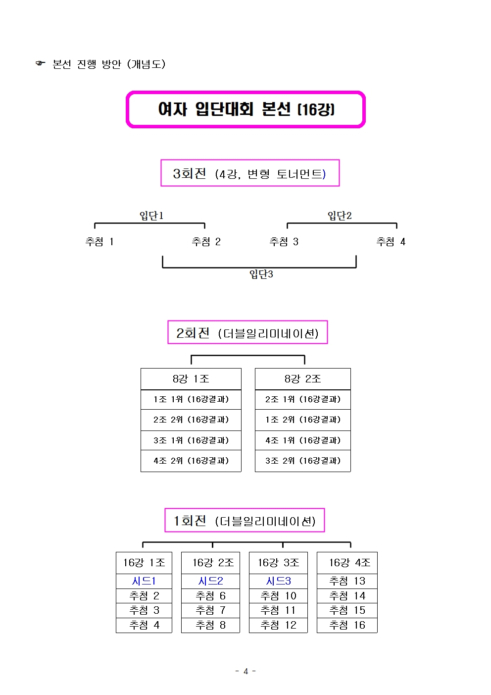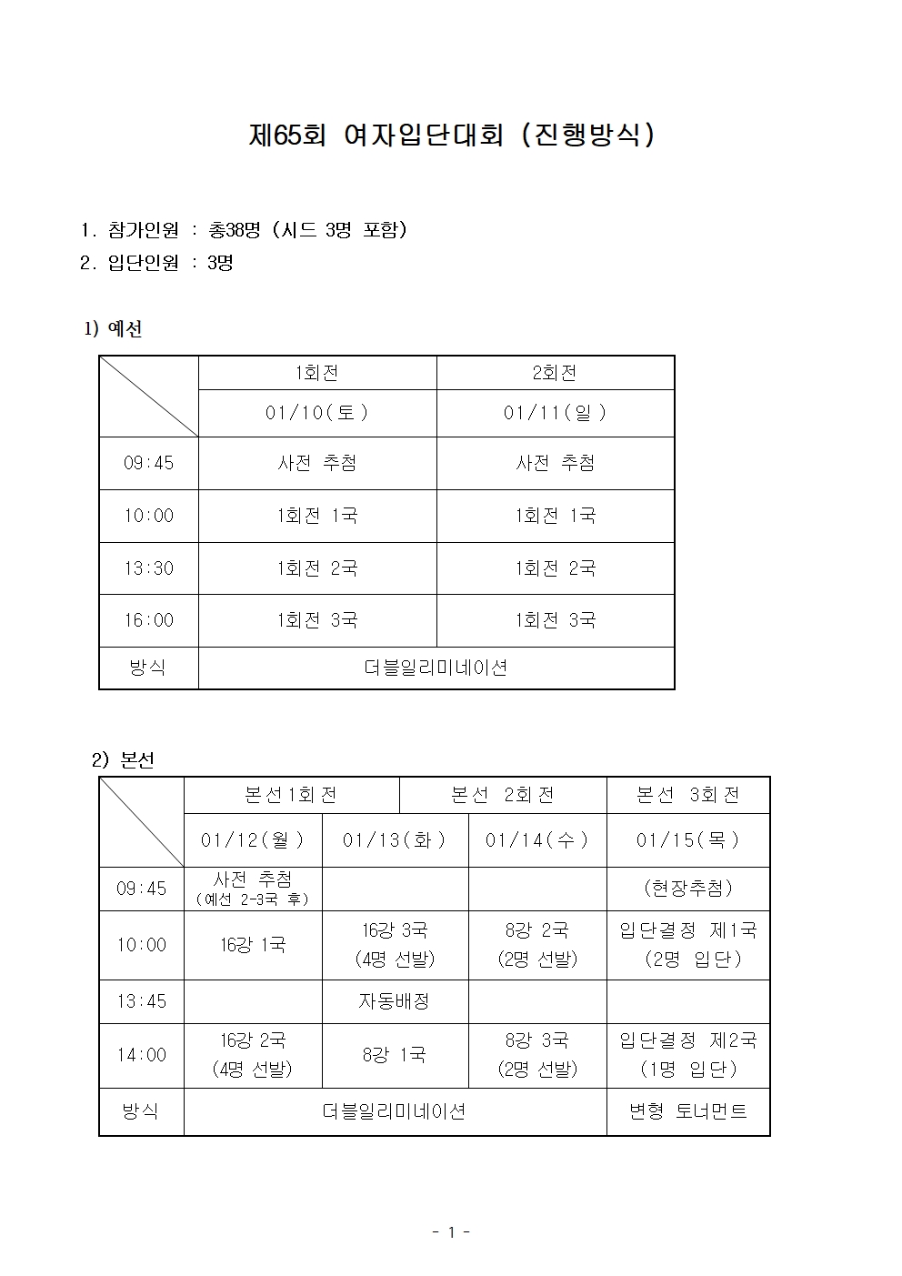 제65회 여자입단대회 대진표(예선1-1, 12/30)