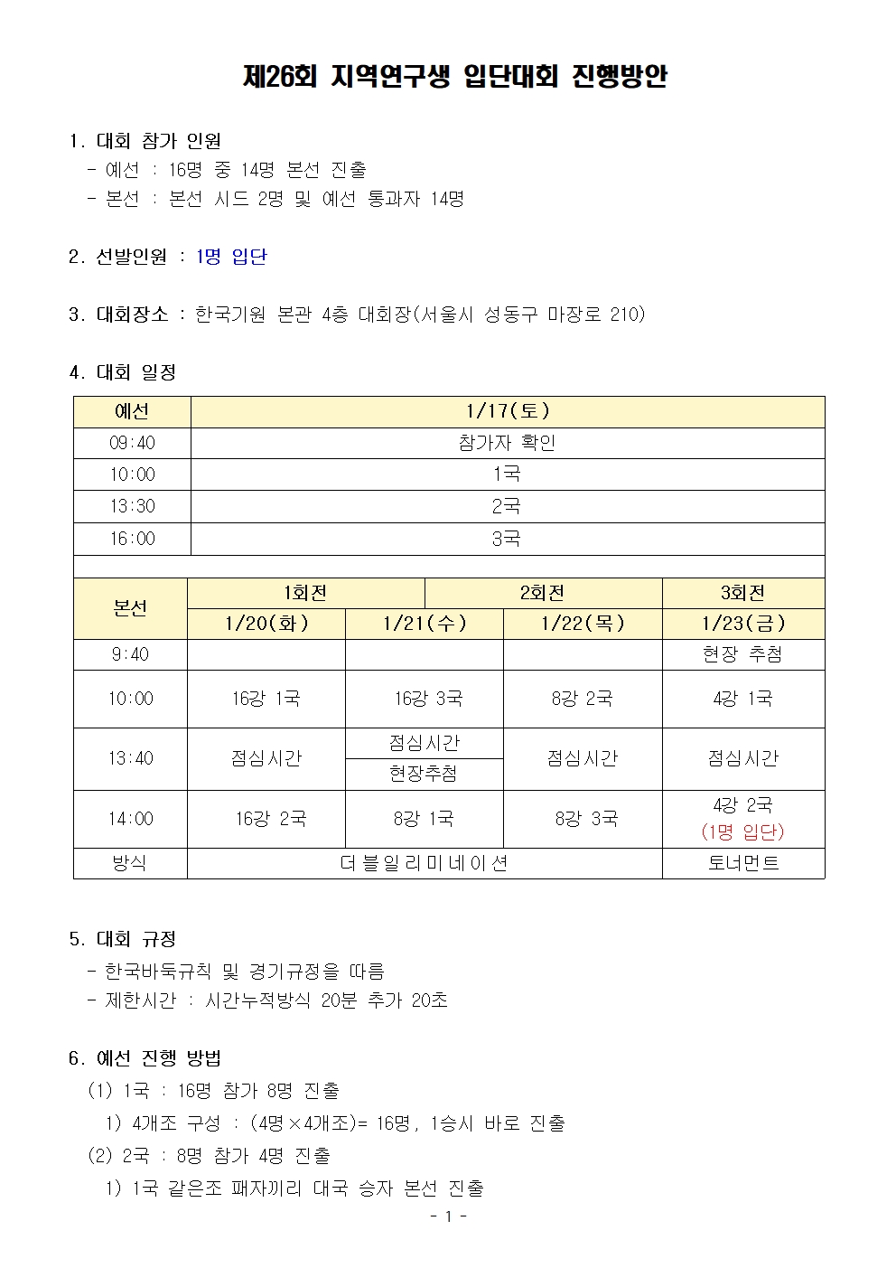 제26회 지역연구생 입단대회 진행방식(01/09)