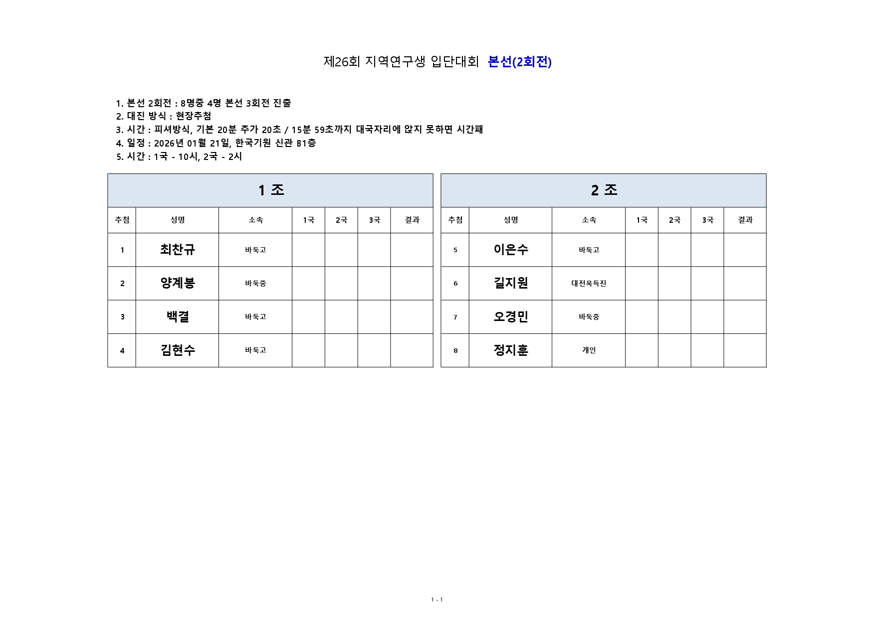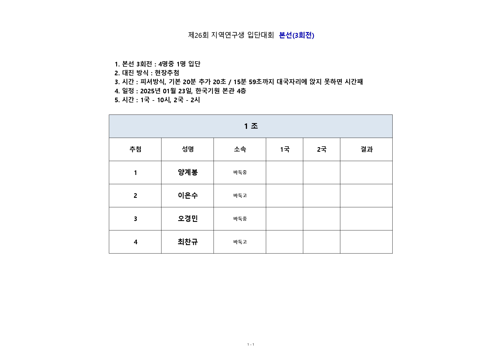 제26회 지역연구생 입단대회 진행방식(01/09)