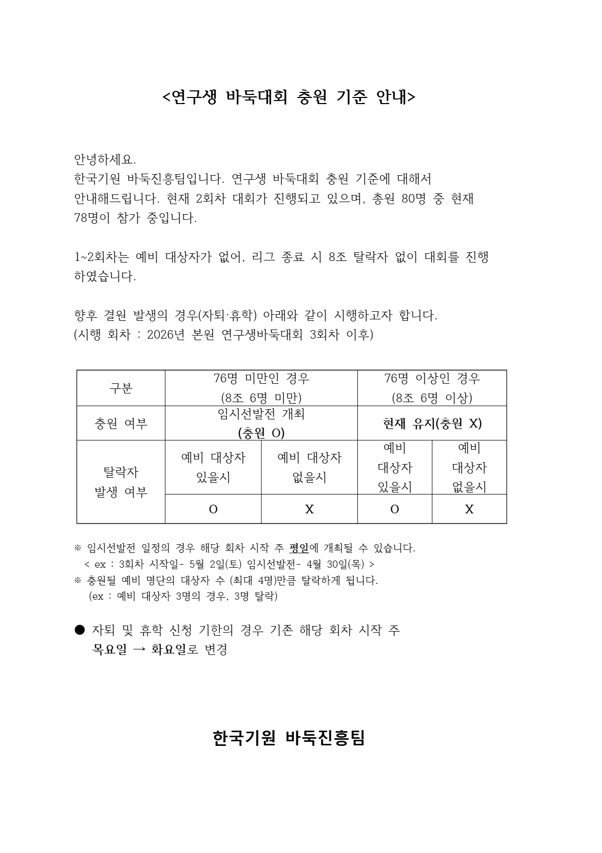 2026년 본원 연구생 바둑대회 2회차 결과 (0405)