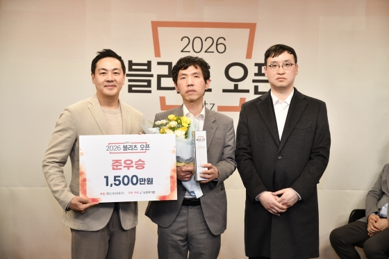 ▲2026 블리츠 오픈 준우승 시상 사진(왼쪽부터) 김태규 대표, 이창호 9단, 조한승 프로기사협회장