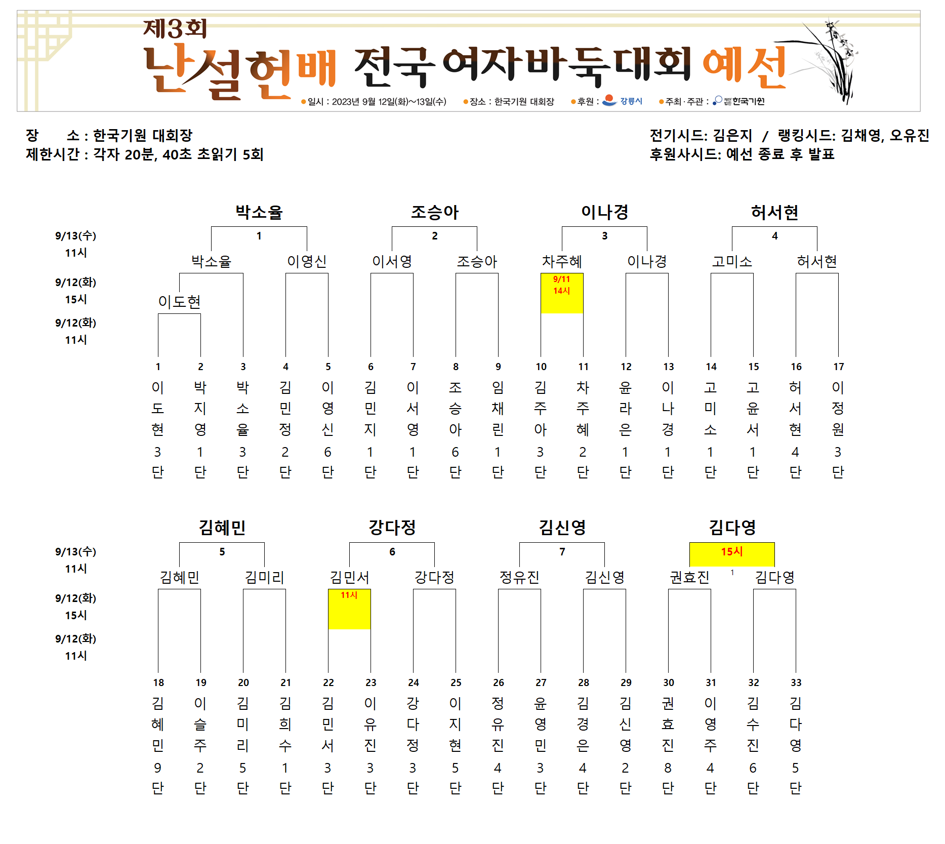 제3회 난설헌배 전국여자바둑대회 예선 대진표(최종)