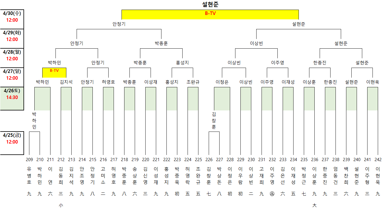 제30회 LG배 조선일보 기왕전 국내 선발전 대진표(최종)