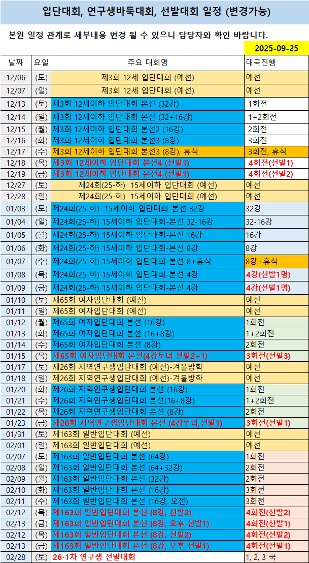 연구생, 입단대회 2025-2026 12월~2월 일정(안), 09/25
