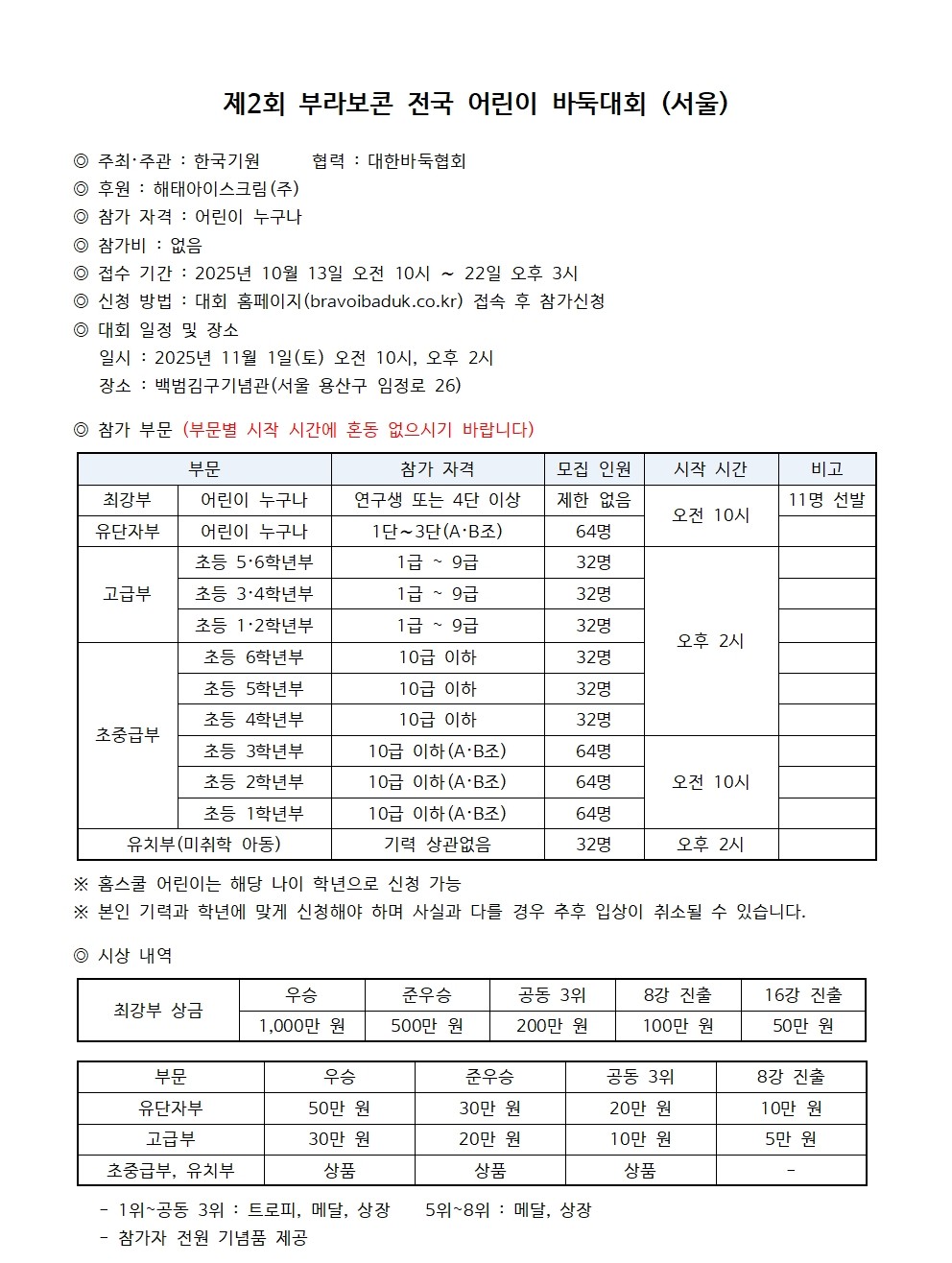 제2회 부라보콘 전국 어린이 바둑대회 (서울)