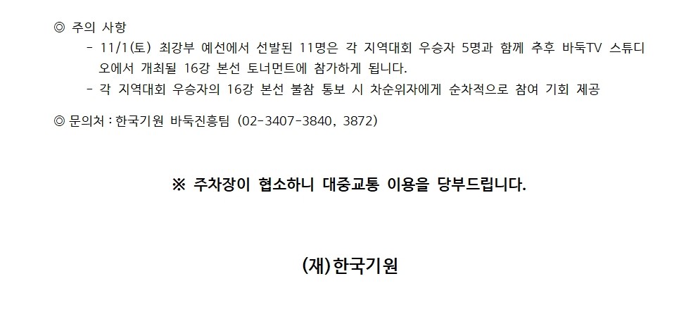 제11회 전라남도 국수산맥 국제바둑대회 세계프로최강전 본선 대진표(최종)
