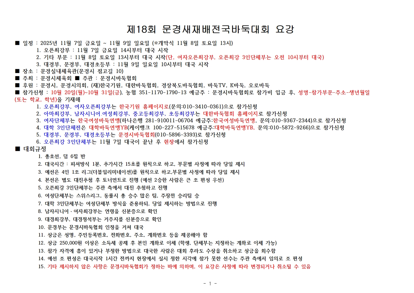 제18회 문경새재배전국바둑대회 전체 요강