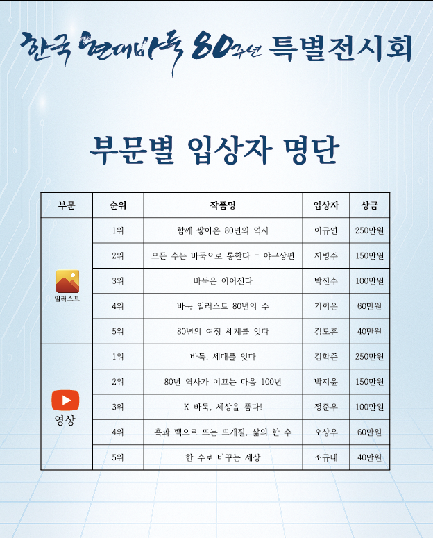 한국현대바둑 80주년 특별전시회 경품 추첨 이벤트 진행 안내