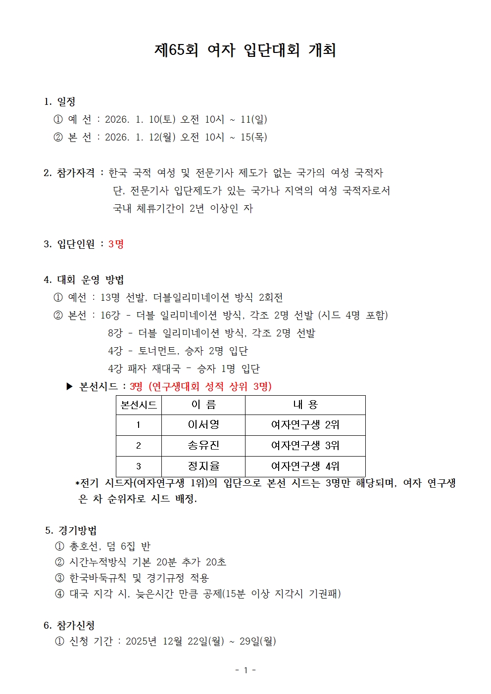 제3회 12세 이하 입단대회 대진표,결과(본선2-1, 12/14)