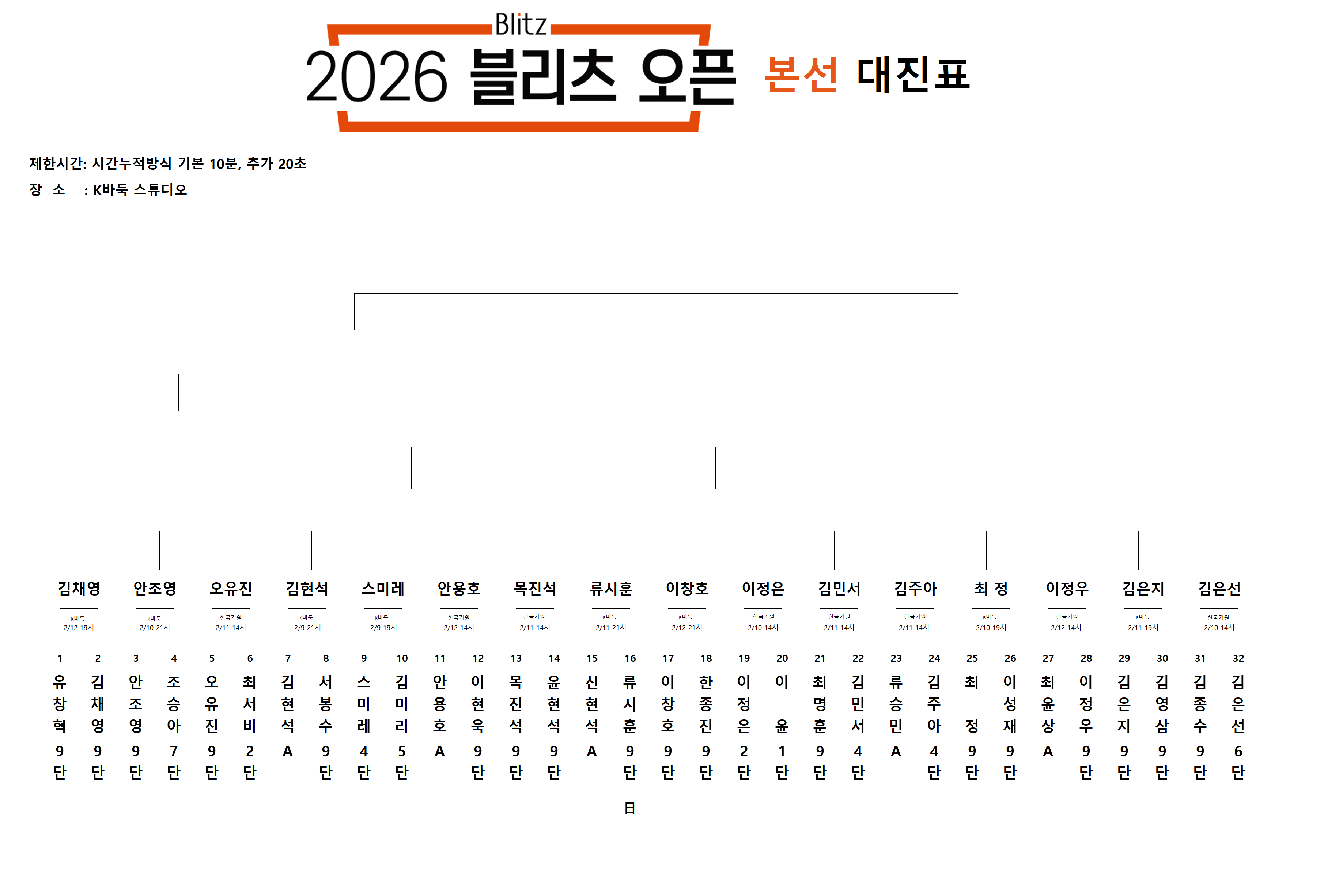 2026 블리츠 오픈 본선대진표(0212)